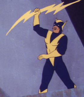 In Justice League Unlimited, the League encountered a group of genetically engineered superheroes called the Ultimen. The Ultimen had analogues of all the original characters created for the Super Friends, including Black Vulcan. So if you're keeping score, Black Lightning led to Black Vulcan, who led to Juice. Everybody got that?
